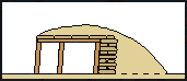 A structure was said to be splinter proof when it was designed to absorb the impact of shell fragments and spherical case bullets. Splinter proof shelters consisted of heavy post and joist framing covered with plank sheating and two or three feet of rammed earth. Unlike magazines, the side facing away from the direction of enemy fire was left open to allow troops easy access to the shelter. The splinter proof illustrated here is based on the splinter proof at Battery Brown on Morris Island, South Carolina. This construction was reinforced with sandbags and covered over with sand. Splinter proofs were usually sited in rear or to the flanks of heavy siege batteries and were built low enough to gain some protection from the battery's parapet. In batteries, traverses that were not subject to flanking fire were usually only built thick enough to be splinter proof. | ||