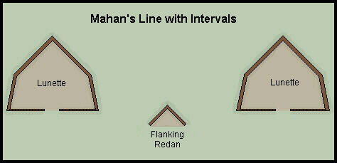 lunette, which Mahan preferred over redoubts because they were open at the