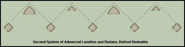 lunettes or square redoubts with salient angles 250 yards apart. Each