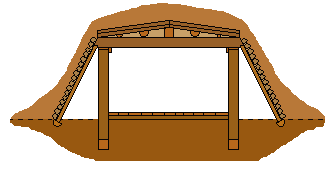 constructed with closely fitting vertical post walls and additional air chambers