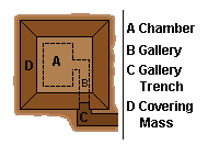 bags, a gallery which provided access to the chamber, and a covering mass
