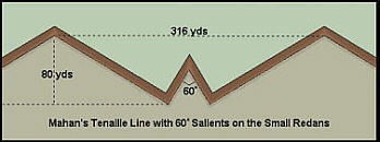 redans of Mahan's first arrangement, for example, required 320 yards of parapet