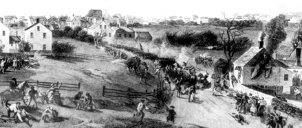 about sixty or seventy yards from us, huzzaing, and on a quick pace towards us ...." John Robbins, Militiaman "Damn them, we will have them!" "Lay down your arms, you damned rebels!" "the shot heard 'round the world" |