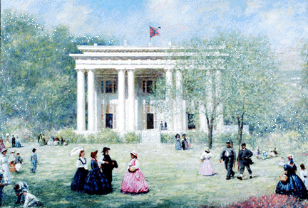 Soon after his inauguration as provisional president on February 18, 1861, Davis appointed his first cabinet; each of the six members represented a different state. The first task of the administration was to prepare for the impending conflict. Between December 30, 1860, and February 18, 1861, the Confederates had seized 11 federal forts and arsenals from South Carolina to Texas and harassed Fort Sumter in Charleston, South Carolina. Lincoln, in his inaugural address on March 4, 1861, rejected the right of secession but attempted to conciliate the South. Negotiations for the relief of Fort Sumter failed, and on April 12 the bombardment of the fort began. Three days later Lincoln announced that an insurrection had occurred, and he called for volunteers. The number of states in the Confederacy was increased to 11 by the secession of Virginia in April and of Arkansas, Tennessee, and North Carolina in May. The provisional Confederate Congress, which had met for four sessions between February 4, 1861 and February 17, 1862, was replaced by a permanent legislature on February 18, 1862. The Confederate capital was moved on May 24, 1861 from Montgomery to Richmond, Virginia. At the first general elections held under the permanent constitution on November 6, 1861, Davis was elected president and Stephens vice president. In February 1862, Davis was inaugurated president for a term of 6 years. The last years of his service were marked by the conflict between the civil and military forces and gave rise to the assertion that the government of the Confederacy had become a military dictatorship. The tendency toward dictatorship was increased by the custom of holding secret sessions of the Congress, by the practice of cabinet officers exercising their rights to sit in Congress, and by the gradual lowering of the political morale and independence of Congress. This condition was further complicated by personal controversies among officials. The first permanent Congress held four sessions; the second Congress, two sessions, with the final adjournment of the body taking place on March 18, 1865. Although the political organization of the Confederacy was almost identical with that of the Union, the outbreak of the war served to accentuate the marked difference between the two sections. The population of the Confederacy at the start of the war was nearly 9 million including more than 3.8 million slaves. The population of the territory loyal to the Union was about 22 million, including about 500,000 slaves. The value of the improved lands of the seceding states was estimated at less than $2 billion; the value of those in the Union states was nearly $5 billion. The South had 150 textile factories, with a product valued at $8 million; the North had 900 such factories, with a product valued at $115 million. In the South 2000 persons were employed in the manufacture of clothing; in the North 100,000 were so engaged. During 1860 the imports of the South were valued at $331 million; those of the North at $31 million. It was thus obvious that the South was dependent on Europe and on the North for material goods. The lack of resources forced the Confederacy to levy war taxes and borrow heavily on future cotton crops. An inflationary period in 1863 and later government actions almost destroyed the Confederate credit. In addition the South was hampered by the lack of powder mills and of suitable iron works; only one plant, the Tredegar Iron Works in Richmond, was equipped to turn out large field guns. The railroad system was inadequately developed and equipped, and although the South made desperate attempts to maintain itself in a battle against overwhelming odds, the struggles left it financially and industrially ruined at the close of the Civil War. The process of restoring the Confederacy to the Union was called Reconstruction. |
