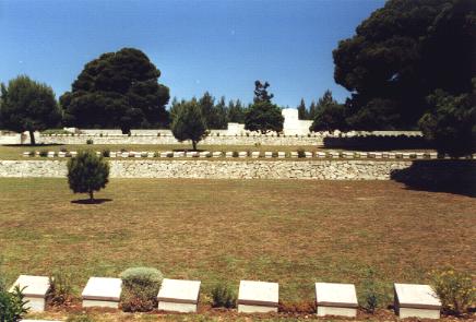 Twelve Tree Copse Cemetery is about half a mile South-West of the village of Krithia. It was made after the Armistice by the concentration of smaller cemeteries and isolated graves from the battlefields of April to August and December, 1915. It covers an area of 9,307 square yards; and it contains the graves of 679 soldiers (and sailors and marines of the Royal Naval Division and the Royal Naval Air Service) from the United Kingdom, 60 from New Zealand, ten from Australia, one from Ceylon, and 1,953 whose unit in our forces could not be ascertained. The unnamed graves number 2,226 and special memorials are erected to 646 soldiers from the United Kingdom, ten from New Zealand and one from Australia, known or believed to be buried among them. These special tablets include the names of 142 officers and men of the 1st Essex who fell on the 6th August, 1915, and 47 of the 1/7th Scottish Rifles who fell on the 28th June; and it is probable that most of the dead of some other units on those two dates are buried here as unknown soldiers.
