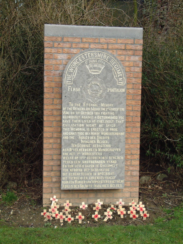 The 2nd Worcestershire Regiment was part of 5th Brigade, 2nd Division, and crossed to France on 13th August 1914, and was commanded by Lieutenant Colonel C.B.Westmacott. It did not serve at Mons, and was at Landrecies during the Retreat From Mons. After fighting on the Marne and the Aisne, it moved to Flanders in October.
