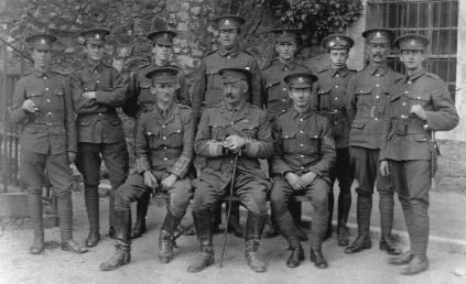Lt-Col F.Langham (front centre) with men from the Orderly Room 1915. (ŠPaul Reed)