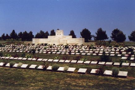 The cemetery is three quarters of a mile West of Sedd el Bahr village. It stands on a small ridge named Karaja Oghul Tepe, 300 feet above the sea and overlooking "W" Beach. The greater part of the cemetery (Rows A to J and part of Row L) were made between the landing in April 1915, and the evacuation in January 1916. Row I contains the graves of 86 men of the 1st Lancashire Fusiliers (82 of them unidentified) who fell in the first two days. Row K, and part of Row L, were made after the Armistice by the concentration of graves from other cemeteries mentioned at the end of this Introduction. The actual cemetery covers an area of about 1,666 square yards, and is enclosed by stone walls on all sides. Thirty feet outside the walls is a wire fence, and between the fence and the wall is a belt of pines, tamarisk and evergreen oaks. The Cross rises from the wall at the back of the cemetery, and the War Stone stands in front of it; and cypresses are planted on either side of the Cross.