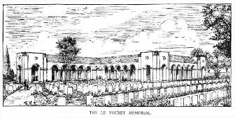 The Le Touret Memorial commemorates 13,479 British soldiers who fell in the fighting from October 1914 until 24th September 1915, when the Loos Memorial takes over. Geographically it covers an area enclosed in the north by the river Lys and a line drawn from Estaires to Fournes, and in the south by the former wartime boundary of the First Army at Grenay. As such the following major battles and actions are represented by the commemorations on this memorial: