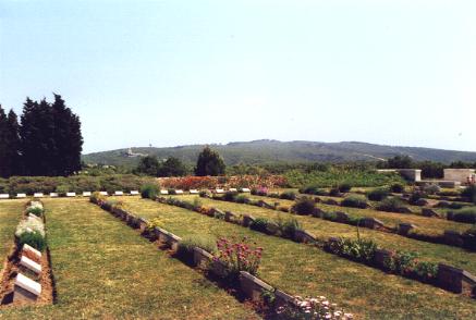 ANZAC is the midmost of the three areas into which the fighting on Gallipoli, and the cemeteries on the Peninsula, are divided. The origin of the name, and the general course of the fighting in 1915, are stated in the Register of the Lone Pine Memorial. Lone Pine Cemetery is the southernmost, except one, in Anzac. The name (derived from a single low pine tree and a song popular in 1915) was applied to the Southern half of a plateau, 120 metres (394 feet) above sea level, at the top of Victoria Gully; and on the 25th April it was reached and passed by part of the 9th Australian Battalion about 8 am, and by other units later. That night it was No Man's Land. On the 26th it was re-occupied by the 4th Battalion, and again it had to be given up at night. It was important as commanding Gaba Tepe, to the South, and the ravines leading up from that part of the coast; and in May, June and July it was a Turkish strong point, known to them as "Kanli Sirt" (Bloody Ridge). The Australians pushed mines towards it from the end of May to the beginning of August; and on the afternoon of the 6th August, after mine explosions and bombardment from land and sea, the 1st Australian Brigade stormed the trenches. By the 10th the Turkish counter-attacks had failed and the position was consolidated. It was held by the 1st Australian Division until the 12th September, and then by the 2nd until the evacuation. The cemetery stands on the plateau, over the original Turkish tunnels. The original small battle cemetery of 46 graves, and the scattered graves brought in from the neighbourhood after the Armistice, form the Eastern plot. At the East end of this is the Lone Pine Memorial (the Register of which has been published), on which appear the names of 4,934 Australian and New Zealand soldiers who fell on the Peninsula or in Gallipoli waters and whose graves are not known. At the West end are the Brown's Dip Plots, to which were removed the graves from the Brown's Dip Cemeteries and others from the vicinity. Lone Pine Cemetery now covers an area (including the Memorial) of 7,578 square yards; and outside this area is a thick belt of dwarf ilex. A lone pine grows in the cemetery. Out of 986 graves, 471 are those of Australian soldiers, two of New Zealand soldiers, 14 of sailors, soldiers or Marines from the United Kingdom, and 499 of men whose unit in our forces could not be ascertained. There are, however, tablets placed here which record the names of 182 Australian soldiers (almost all of whom belonged to the 1st Brigade and fell in August) and one from the United Kingdom, for whom there is evidence of burial in Lone Pine Cemetery or in the cemeteries at Brown's Dip. The Register of Lone Pine Cemetery records particulars of 986 British and Dominion burials. Brown's Dip North and South Cemeteries were in the depression at the head of Victoria Gully, behind the Australian trenches of April-August, 1915. They were made they contained the graves of 149 Australian soldiers. They were removed because of the insecurity of the site.