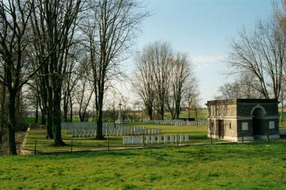 Maple Copse was the name given by the British Army (its use pre-dates the arrival of Canadian troops in 1916) to a small plantation a thousand yards east of Zillebeke, and just west of Sanctuary Wood. The area was used by various Advanced Dressing Stations, and burials took place here both before and after the Battle of Mount Sorrel (June 1916); but in that engagement, and in later fighting, the graves were almost obliterated by shell fire. The site of the Cemetery, on the north side of the Copse, was known and enclosed after the Armistice, but of 256 named graves known to exist there only 26 could be definitely located. The cemetery contains the graves of 142 Canadian soldiers and 114 from the United Kingdom, of which 230 are represented by special memorials (and by 52 unnamed graves). It covers an area of 5,811 square yards. It is enclosed by a moat and a rubble retaining wall, and planted with willows and junipers.
