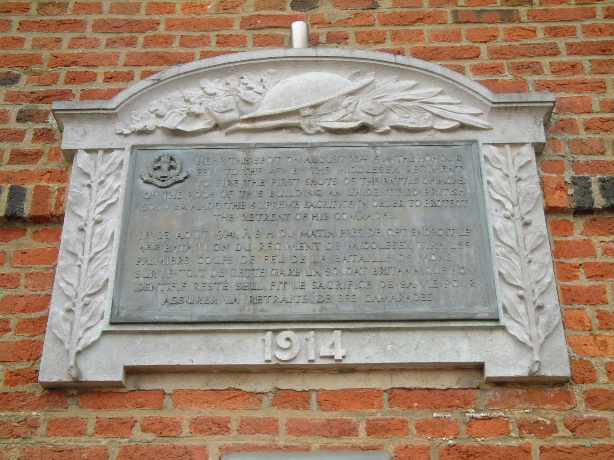 However, later in the day the line faltered and the enemy began to outflank the battalion, which began a withdrawal through the Boisd’Havre, the wood south of Obourg. A rear-guard was fought at the railway station, with an unknown private firing from the station roof until finally hit and killed.