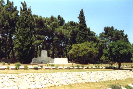 Pink Farm (properly Sotiri Farm) was a building about 2,000 yards South-West of The Redoubt, on the road from Sedd el Bahr to Geoghegan's Bluff. It was named from the red soil of the neighbourhood. Three cemeteries grew up round it, beginning with the First Battle of Krithia (28th April, 1915); and No. 3, which is Plot III and part of Plot IV of the present cemetery, contained at the Armistice 139 graves. The cemeteries known as Pink Farm Nos. 1 and 2, 29th Divisional, 52nd Divisional, Aerodrome, Oak Tree, Gully Beach and Gully Farm were brought in later. The cemetery now covers an area of 3,460 square yards. It contains the graves of 214 soldiers from the United Kingdom (including sailors and Marines of the Royal Naval Division and the Armoured Car Division and Officers of the Indian Army), three from New Zealand, two from Australia, and 164 whose unit in our forces could not be ascertained. The unnamed graves number 250; and 216 sailors or soldiers from the United Kingdom, two from New Zealand and one from Australia, known or believed to be buried among them, are commemorated on special tablets. The cemetery is surrounded by belts of pines at the back and tamarisk on the North and South sides. It rises in a North-Westerly direction, Plots I and II being on a terrace. It is almost on the top of a long ridge stretching to the village of Krithia.