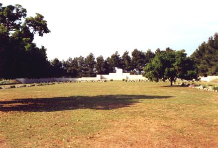 Redoubt Cemetery is on the west side of the Krithia-Seddel Bahr road, south-west of "The Vineyard", 100 metres along a track flanked by pine trees.It is best to park your car by the road, and walk the rest of the way.