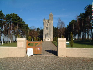 The Ulster Tower stands close to the site of the old German front line in July 1916, on ground fought over by the 9th Royal Irish Rifles on 1st July 1916. It commemorates the men of the 36th (Ulster) Division who fought here on that day, and died here and in the other battles the unit fought along the Western Front.