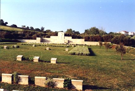 "V" BEACH is "a sandy strip some 10 yards wide and 350 yards long, backed along almost the whole of its length by a low sandy escarpment about 4 feet high, where the ground falls nearly sheer down to the beach."* Behind it is a concave grassy slope rising (at first very gradually) to the cliff edge between Sedd ul Bahr village and Cape Helles. The cemetery stands at the bottom of the grass slope, almost touching the sand. The landing at "V" Beach, in the early morning of the 25th April, 1915, was to be made by boats containing three companies of the 1st Royal Dublin Fusiliers, followed by the collier "River Clyde" with the rest of the Dublins, the 1st Royal Munster Fusiliers, half the 2nd Hampshire Regiment, and other troops. The place was very strongly fortified, and during the 25th the landing was partially carried out at the cost of very heavy casualties. On the morning of the 26th, Colonel Doughty-Wylie and Captain Walford, who were killed during the fight, led the survivors on the beach to the capture of Sedd ul Bahr village and the Old Castle above it. On the evening of the 26th, the main body of the French Corps began to land at "V" Beach, and after the advance on the 27th the front line was nearly two miles beyond it. It was used as the French base during the summer. The cemetery was begun and ended, so far as the burials in 1915 are concerned, during April and May; but after the Armistice 13 graves were concentrated into Row 0. It covers an area of 2,464 square yards, and it contains the graves of 500 sailors and soldiers from the United Kingdom. The unnamed graves are 480 in number, but special memorials are erected to 196 officers and men (nearly all belonging to the units which landed on the 25th April), known or believed to be buried among them. The cemetery is backed by a row of cypresses and a belt of pines, and belts of tamarisk are planted on the North-West and South-East sides. Cypresses and euonymus are among the graves. The Register records particulars of 500 British burials. * Sir Ian Hamilton's Despatch of the 20th May, 1915.