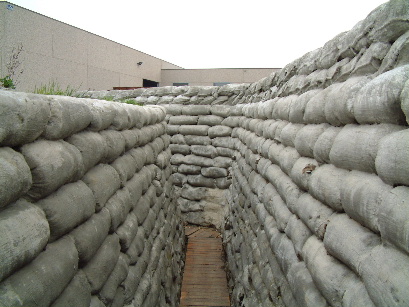 What can be seen at this site is a whole section of the trench, at its original depth, with fire-steps and loopholes, and the entrances to two sections of tunnels and dugouts. The dugouts probably date from a later period, 1916/17, and due to the water level in this area are flooded and cannot be entered. However, on the surface level light stone 'paths' mark out the plan of the system below ground, which at one point is more than thirty feet below the surface.