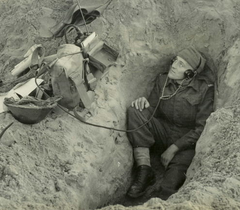 We arrived at the battery command post to be greeted by the signal sergeant, a Scotsman. “Well lad, you are replacing one of the lads in Battery HQ” my name would be put on the duty roster for duties on the telephone exchange, and the radio taking fire orders. He took me over to one of the nearby Sherman tanks calling out to the driver whose name was Bill. He introduced us and left. My new home would be the foxhole which Bill was strengthening with wooden slats from the ammunition boxes.