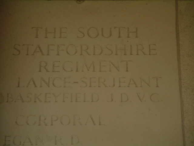 - VC citation London Gazette 23rd November 1944:On 20th September, 1944, during the Battle of Arnhem, Lance-Sergeant Baskeyfield was the N.C.O. in charge of a 6-pounder anti-tank gun at Oosterbeek. During the early stages of a heavy enemy attack, the crew commanded by this N.C.O. were responsible for the destruction of two Tiger tanks and at least one self-propelled gun, thanks to his coolness in allowing each tank to come well within 100 yards of his gun before opening fire. Lance-Sergeant Baskeyfield was badly wounded and the remainder of his crew were either killed or severely wounded, he refused to be carried away from his post, and when the attack was renewed he manned his gun alone and fired round after round until his gun was put out of action. His activity was the main factor in keeping the German tanks at bay, and his example and his courage were responsible for keeping together and in action the surviving men in his vicinity. When his gun was knocked out, he crawled to another nearby which was left without a crew, and succeeded in putting out of action another self-propelled gun before being killed. Lance-Serjeant Baskeyfield's supreme gallantry is beyond praise. During the remaining days at Arnhem stories of his valour were a constant inspiration to all ranks.