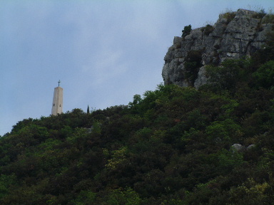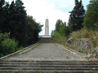The memorial can only be reached on foot. We parked in the car park of the Polish Cemetery; the memorial is signposted here, but it is accessed through a locked gate. After some discussion, the car-park attendant kindly opened the gate for us to walk uphill - we later tipped him for his trouble, so that he would do the same for others. It is about 25 minutes walk from the car park.