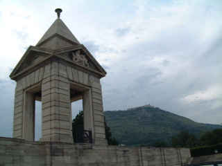 Approaching Cassino via the Liri Valley John Dray was able to give us an insight into the fighting there as he began to recognise the names of many places he had fought over in May 1944. We came off the motorway at the exit for Cassino and drove into the town to find our hotel. We had chosen the Hotel La Pace, which although it looked fairly shabby on the outside, it proved to be excellent on the inside with very helpful staff and clean, large and well suited rooms - and a super restaurant as we discovered that night. It also has free internet access and has a good display of WW2 battlefield relics recovered from the surrounding; above it sits Castle Hill and it is only minutes from all the main sites - we found it excellent for this part of the trip.