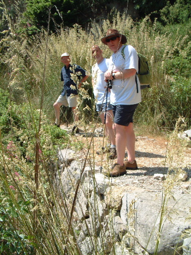 But our main objective was Snakeshead Ridge; so we went back down Hill 593 and took a farm track to some buildings, which John identified as his former battalion headquarters. The family who owned it came out, and showed quite some interest - and John, in his 1944 soldier's Italian was able to explain he was a veteran. At that they brought out the red wine, and we spent some time chatting - they were really friendly, and agreed to let us wander around at will. In doing so we found John's old route up, the well he had used in 1944, the Bowl where the reserve positions were and the site where his sangars were located. Although John had been back to Cassino several times, this was the first time on Snakeshead Ridge since he was there sixty years ago, and it made the trip for us all. We started the long route back down, and headed for a late lunch in Cassino.