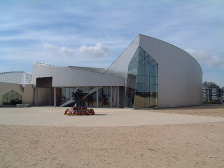 The Juno Beach Centre opened on 6th June 2003. It tells the story of the Canadian landings on Juno Beach on D Day, but more than that it looks at Canada's entire role in the Second World War. From Hong Kong and Dieppe, to the fighting in Italy, and the Battle for Normandy and North-West Europe, the experience of Canadian service men and women is moving related in a number of themed areas. The visit begins in the cinema, which in the darkness looks like the inside of a landing craft. Here you view a short film about D Day. You then move on to see the background to Canada on the eve of WW2, before moving into the areas dealing with the fighting. Throughout there are numerous photos, videos to watch and personal accounts to listen to (everything is in English and French) - presented in an easy and user-friendly way, and making the best use of modern technology. The main visit ends with the 'Some Came Back, Others Did Not' area where you can see items connected with individual men and women who served - and some who died, while above you Canada's Roll of Honour for WW2 scrolls on a massive screen. The final part of your visit has an Internet area, and eventually there will also be a small library for research.