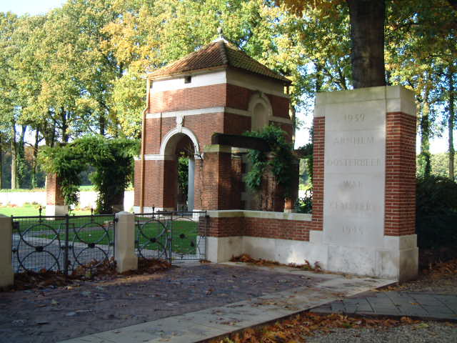 Following the Normandy landings of June 1944, the Allied advance through northern Europe was extraordinarily rapid and on 11 September 1944, the Second Army entered the Netherlands just south of Eindhoven, the first Allied troops to set foot in the country since its fall in May 1940. Their next aim was to cross the Rhine before the Germans had time to reorganise after their recent setbacks, securing crossings over the rivers and canals that stood in their path at Grave, Nijmegen and Arnhem. 'Operation Market Garden' would involve the United States 82nd and 101st Airborne Divisions, the Commonwealth 1st Airborne Division and the Polish Parachute Brigade. On 17 September 1944, the 1st Airborne Division began landing west of Arnhem, but German resistance, bad weather and problems with supplies and reinforcements led to heavy losses, and their objectives were not taken. They were forced to form a perimeter at Oosterbeek which they held stubbornly until 25 September, when it was decided to withdraw the remnants of the division across the lower Rhine. Arnhem Oosterbeek War Cemetery contains the graves of most of those killed during the September landings, and many of those killed in later fighting in the area. There are now 1,678 Commonwealth servicemen of the Second World War buried or commemorated in the cemetery. 246 of the burials are unidentified and two casualties are commemorated by special memorials. There are also 73 Polish burials and eight Dutch graves. The three non-war graves in the cemetery were Commission employees.