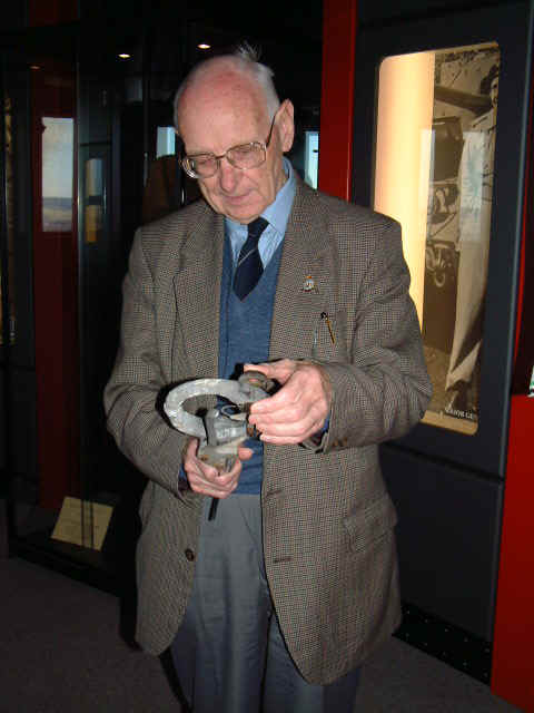 Our tour ended in the Falaise Pocket where we visited the ground straffed by the Typhoons and Mustangs Frank saw taking off every day in August 1944. The staff at the Polish Memorial on Montormel were great - they not only asked Frank to sign their veteran's register, they produced a Typhoon control stick for him to see (see below) and gave him a book about the fighting at Montormel. This was a special touch which was greatly appreciated.