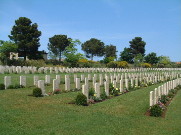 On 3 September 1943 the Allies invaded the Italian mainland, the invasion coinciding with an armistice made with the Italians who then re-entered the war on the Allied side. Allied objectives were to draw German troops from the Russian front and more particularly from France, where an offensive was planned for the following year. Progress through southern Italy was rapid despite stiff resistance, but by the end of October, the Allies were facing the German winter defensive position known as the Gustav Line, which stretched from the river Garigliano in the west to the Sangro in the east. By 4 November, the Allied force that had fought its way up the Adriatic coast was preparing to attack the Sangro river positions. A bridgehead had been established by the 24th and by nightfall on the 30th, the whole ridge overlooking the river was in Allied hands. The site of this cemetery was selected by the 5th Corps and into it were brought the graves of men who had died in the fierce fighting on the Adriatic sector of the front in November-December 1943, and during the static period that followed. In addition, the cemetery contains the graves of a number of escaped prisoners of war who died while trying to reach the Allied lines. Sangro River War Cemetery contains 2,617 Commonwealth burials of the Second World War.