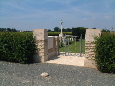 From Bayeux take the N13 towards Caen. After about 12 kilometres turn left onto the D217, and the village of Secqueville will be found about 2 kilometres to the north. Turn right in the village, and after a few hundred metres take the track to the left, signposted Farringdon Way. The War Cemetery will be found in open fields on the left hand side.