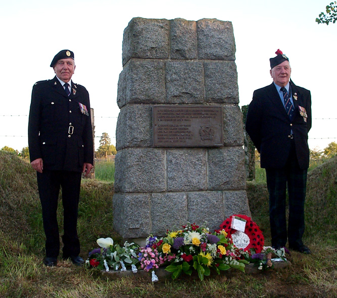 1. Two of the Rauray veterans who attended the wreath laying ceremony; left, Sapper Bill Hudson, 757 Field Company, RE, and right, Sgt. Sam Swaddle, A/Tk Platoon, 1st Tyneside Scottish, whose 6 pounder A/Tk gun knocked-out two German tanks during the Rauray battle.