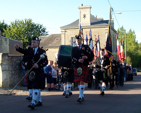 On Friday 28th June 2002, Rauray veterans and members of 204 Battery (Tyneside Scottish), 101 Regiment RA (V), the present day Tyneside Scottish, took part with locals in a ceremonial procession and wreath laying at the memorial.