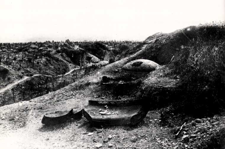 The following day the French artillery suddenly falls silent. Monday - 23 October Both Creusot-Schneider guns start to fire again at Fort Douamont. Two perfect hits penetrate the core of the fort and cause enormous damage. The lights stop shining and the second hit kills all that are present in the military hospital. Also a fire starts. Unfortunately, grenades make numerous victims. There are many wounded and poisoned with gas and the troops start to panic.