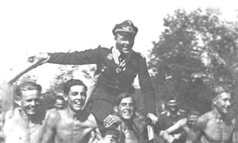 On August 9, 1942, pilots of JG54 received another shock. In the fight with Soviet fighter had been shot down and killed the best Luftwaffe pilot on that period, which had been honored by all possible medals of the Third Reich, Maks-Helmut Ostermann(102 victories). His BF-109 crushed into Ilmen' Lake and sunk.