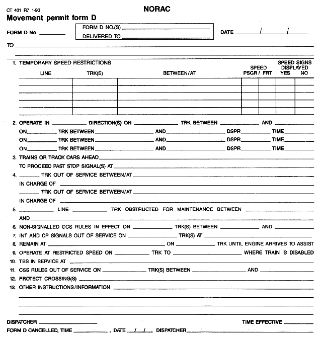 Conrail Clearance Form D