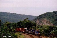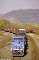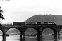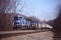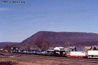 Mail-3 heads west past Marysville, PA on February 25, 1996 behind a typical large lashup.