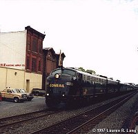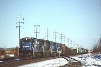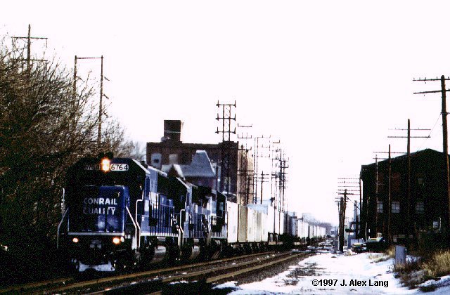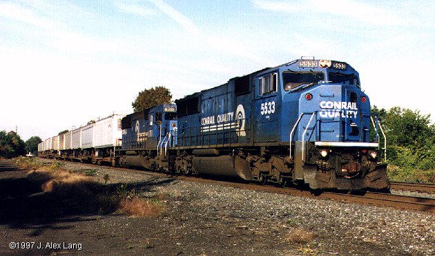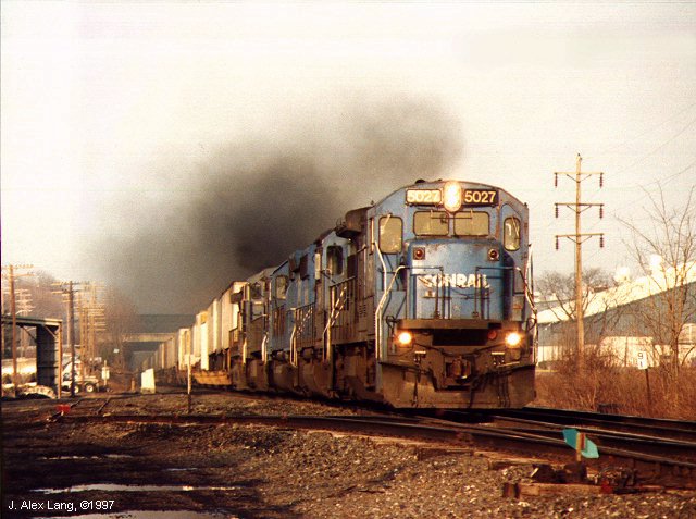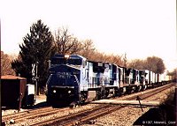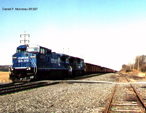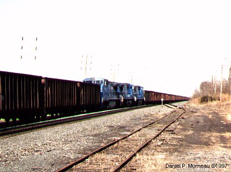 migrated to the north. In 1989, a Conrail XWM empty hopper train rolls