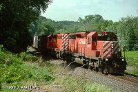 followed by SD40-2B 3254, and SD40-2 5677 is at Sunbury on June 3, 1994. Photo by Kevin