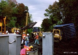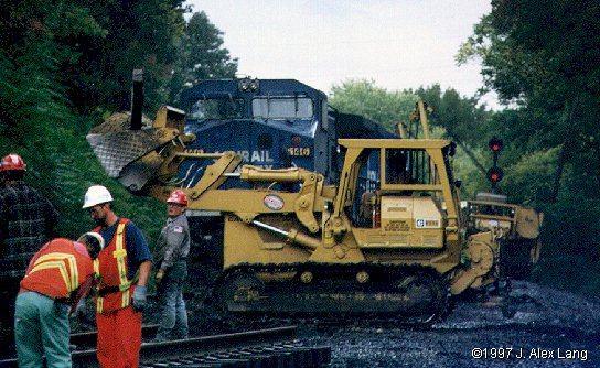 | This is a more close-up view of PIBE's power. The bulldozer is clearing debris from the #2 track to facilitate the installation of panel track. |
