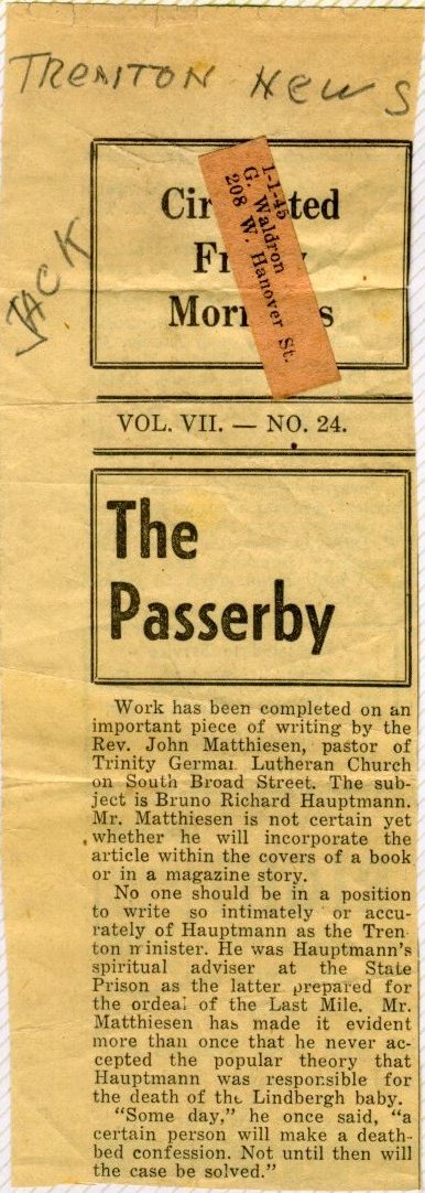 Trenton NewsThe Passerby: Hauptmann's minister believes he was innocent. |