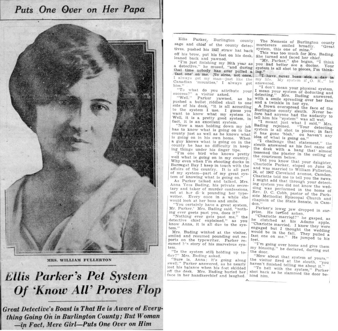 The below listed articles were found in old scrapbooks kept by Charlotte Parker, daughter of Ellis H. Parker. She was able to outfox the Fox of the Pines.