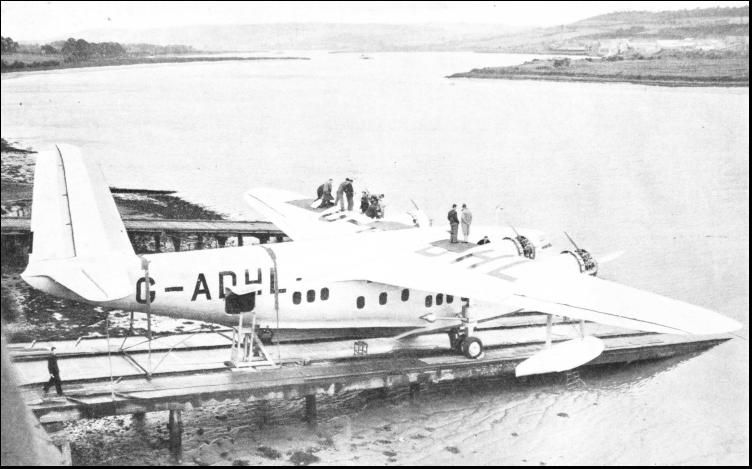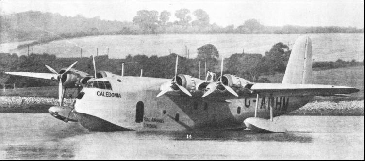 THE advantages offered by the large-scale flying boat for use on overseas air routes have long been recognized, and one of the most important and significant developments in British commercial aviation has been the recent adoption of this type of aircraft by Imperial Airways. Imperial Airways have had a small number of flying boats in use for some years, but it was not until 1934 that it was decided that on their long trunk routes the flying boat class of craft. should be used as well as the land plane. This re-equipment represents one of the boldest steps ever taken in British air transport. A contract was placed with Short Brothers, Ltd., of Rochester, Kent, for twenty-eight flying boats, the specification laid down being based on Imperial Airways' experience in flying over their scheduled routes between England and South Africa, England and Australia, and elsewhere. The Short Empire flying boat has been the result. She is an all-metal cantilever monoplane powered with four engines. In design and construction the craft is full of ingenious and unusual features. Among modern aircraft she is a giant in size and in weight. From tip to tip the main plane measures 114 feet. From nose to tail the length is 88 feet, and the overall height is 31 ft. 9-3/4in. Unladen, the boat scales 24,000 lb., and when fully loaded, 40,000 lb. Yet this great monster weighing eighteen tons can attain 200 miles an hour as a maximum all-out speed, or can cruise at 165 miles an hour with the motors throttled down. The normal range in still air is 760 miles, and after a take-off lasting only twenty-one seconds the boat can gain height up to a ceiling of 20,000 feet at the rate of 950 feet a minute. These figures, which must necessarily be baldly stated, cannot in themselves convey a true idea of the immense bulk of the craft, nor the impressiveness of her behaviour on the water and in the air. The craft has to be boarded and viewed from inside and outside before one can realize what a masterpiece of aircraft construction her manufacturers have achieved. A factor that makes their venture all the more remarkable is that in many ways the design breaks away from orthodox practice. The only precedent was the Short Scion flying boat which was, in effect, a half-scale model of the new Empire class.