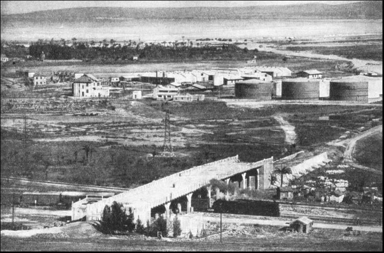 Strangely enough, the oil engineers did not look upon this damage as serious, describing the occurrences as "mere pin-pricks," although they often involved the loss of a few hundred tons of oil. At Haifa the oil is received in giant tanks built on reclaimed ground close to the port. There are sixteen of these tanks, the largest ones each having a capacity of 11,000 tons of oil. There is also a factory for producing petrol tins, with a capacity of 6,000 tins a day. The depot supplies oil to the local markets—Palestine, Egypt and Transjordan. The tanks are linked with the harbour by special pipelines through which the valuable liquid is pumped into ocean-going tankers. Ships of the British Navy now go to Haifa when in need of oil fuel. The discovery of petroleum in Iraq, and the building of the pipe line across the Syrian desert to the Mediterranean coast, should be of considerable ultimate benefit to the peoples of those countries. Some fourteen to fifteen thousand local inhabitants were employed on the various works of construction. The capacity of the pipe line is 4,000,000 tons of oil a year. The royalty payable to the Iraq Government is 4s. a ton. If the full quantity is taken it means a revenue of £800,000 a year. Indeed, Iraq's principal source of revenue will be her oil, towards the development of which she has not been called upon to subscribe.