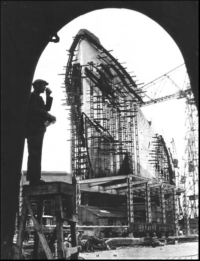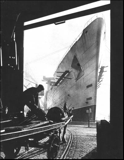 To both expert and layman and to men of all ages and all climes the building of the giant Queen Mary must for ever remain not only a triumph of imagination and skill, but also a piece of magic. It was Samuel Cunard who originated the bold plan of connecting Britain, Canada, and the United States by regular mail and passenger steamship lines. Samuel Cunard was considered to be a madman, since all men of vision are inevitably regarded with suspicion and sometimes with contempt by the conventionally minded. Undaunted, Cunard built the Britannia—207 feet long, 740 horse-power—in 1840. To-day, fewer than a hundred years later ; the world is presented with an epic of human initiative and construction—the Queen Mary, with an overall length of 1,018 feet, a beam of 118 feet, and a depth from keel to masthead of 234 feet ; a ship that meant the employment of the brains and fingers of 300,000 workpeople, a ship that is the rightful Cunard descendant from the first germ that made transatlantic travel by steamship practicable. The building of the Queen Mary is one of the greatest stories of human achievement. The building of any large ship is a complicated problem that has to be unravelled months, and sometimes years, before she can go down to the sea. In the early stages of design men experimented with tiny models of hull form, their researches being planned to test what would happen in all kinds of Atlantic conditions when applied to various forms of hull. For the Queen Mary over seven thousand experiments were carried out with many forms and shapes of models, which travelled a distance of 1,000 miles up and down the experimental tank until the final form was determined.