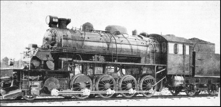 ALTHOUGH a good deal is heard from time to time of the advantages of the electric locomotive, or that deriving its power from a diesel engine, that well-tried servant of the travelling public—the steam locomotive—is not yet superseded or even obsolescent, as recent performances on British main lines have conclusively demonstrated. On the Continent, also, and elsewhere, the steam locomotive is equally alive. Many experiments have been made in the attempt to improve the efficiency of the steam locomotive. In particular, engineers have tried to apply to the locomotive the principle of the steam turbine which has been so successful in ships and in power stations. It is a moot point whether or not turbine propulsion should be combined with the use of a condenser. In theory, if this is done, the exhaust steam, with all its heat, is conserved, instead of being wasted in the atmosphere. In practice the non-condensing turbine locomotive has proved more successful than one provided with a condenser. Several British experimental turbine locomotives have been built. In 1910 there appeared a turbo-condensing engine, with electrical propulsion. Eleven years later an improved version was built. In later experiments the electrical transmission was dispensed with. Meanwhile, the Swedish engineer, Fredrik Ljungstrom had been carrying out some interesting experiments. His condensing turbo-locomotive of 1921 comprised two vehicles coupled together. One vehicle carried the boiler and the other the condenser. The turbine was placed between the two. In 1926 an English firm built a locomotive of similar type under the Ljungstrom patents. This engine was tested for some months on the L.M.S. Railway. The L.M.S. brought, out, in 1935, a turbine express passenger locomotive, without either electrical transmission or condenser. This engine has performed remarkably well. Recently turbine propulsion has been revived in Sweden, as may be seen in the striking example illustrated below. The engine is of the 2-8-0 type. The structure in front of the smokebox is the motor unit, and consists of a non-condensing turbine of the Ljungstrom type. Running at the high speed of 10,000 revolutions a minute and supplied with superheated steam at a boiler pressure of 185 lb. per sq. in.. the turbine transmits its power to a jackshaft immediately below it through reduction gearing analogous to that of a motor car and having a ratio of 1 to 50.7. The ends of the jackshaft are provided with balanced cranks which are connected by coupling rods to the crank-pins of the four driving wheels on either side. The turbine, although it exhausts to the atmosphere and not to a condenser, is capable of developing 1,350 horse-power, and the normal tractive effort is 39,680 lb. The gauge is the standard one of 4 ft. 8-1/2 in. and the driving wheels are of 4 ft. 5-1/8 in. diameter. The locomotive is used on a line in Sweden on which there is a large amount of heavy mineral traffic. The line is worked by the Grangesberg-Oxelosund Traffic Company, for which three engines of this type have been supplied by the firm of Nydqvist and Holm A. B. Trollhattan, Sweden. It may be asked what advantage the non-condensing turbine locomotive has over the ordinary reciprocating type, and by way of answer some figures may be quoted. The first of the three locomotives has been engaged in hauling heavy iron-ore trains having a dead load of 1,750 tons behind the tender. Long inclines of 1 in 100 have presented no difficulty. A distance of 71,500 miles was run before general repairs were needed, the greatest distance run by reciprocating engines engaged on the same work being 36,000 miles. Comparative tests, made in 1933 between the two classes of engine, showed a saving of fuel of 23.8 per cent with the turbine locomotive. ![]() Many thanks for your help