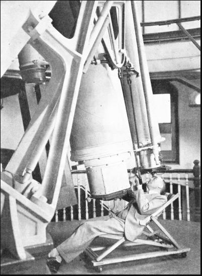 IN man's effort to conquer space and to learn something of the marvels of the universe he has built, many mighty telescopes. This work demands the skill and ingenuity of the engineer, as well as that. of the optician and the electrician The largest of existing telescopes is the 100-in Hooker reflector housed in a circular building on a mountain top in Southern California. The telescope weighs 96 tons, and has a mirror of 8 ft. 4 in. diameter which alone weighs 4-1/2 tons. It is to be outclassed by a still bigger instrument, with an object glass 16 ft. 8 in. diameter. This is the largest piece of glass ever cast and weighs 17 tons. Half a century ago the most powerful of telescopes weighed no more than 15 or 20 tons, with eye-pieces of correspondingly small diameter. It was in 1888 that the Lick Observatory first opened its doors and astounded the astronomical world with a 36-in refractor telescope. It was built according to the provisions of the will of James Lick, an American millionaire, who left a sum of £140,000 to found and equip an observatory to contain a telescope "superior to and more powerful than any instrument ever yet made." The telescope, which has a focal length of 56 feet, was built and set up in a steel house on Mount Hamilton, not far from San Jose, in California. Lick's example was quickly followed by other wealthy men. Telescopes grew in size and power, and were named after their donors. There developed a race among the great observatories of America as to which of them should hold the blue riband of the astronomical world. The Lick was soon followed by another mighty refractor with an object glass of 40 in. diameter, known as the Yerkes telescope, the gift of Mr. Charles T. Yerkes to the University of Chicago. A sum of £250,000 was spent upon the telescope and on the observatory that houses it at Williams Bay, not far from Chicago. The observatory's circular, movable domed roof was the largest that had been built at that time and was rightly regarded as a clever piece of engineering work. So also was the floor, which was so designed that the astronomer sitting at the eye-end of the telescope could cause it to rise or fall by the mere pressure of a button. The telescope, which has a focal length of 64 feet, weighs, with its pedestal, 75 tons. Three years were spent in grinding and polishing the mirror, and when this work was finished and the lens ready for use it weighed half a ton.