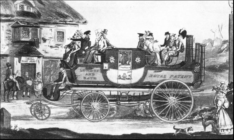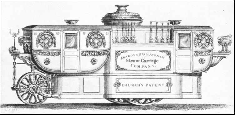 Many years later, when the building of railway locomotives had been begun, certain engineers were experimenting with a remarkable alternative, in the form of high-speed road coaches driven by light, high-pressure steam engines, and running for relatively long distances on the country's great turnpikes. Several names stand out among those of early nineteenth-century engineers who did their best to popularize mechanical transport on the roads. One of these men was Mr. (afterwards Sir) Goldsworthy Gurney, whose experiments began in 1827, ten years before the accession of Queen Victoria. He was the first man to build a self-propelling, or motor coach to carry fare-paying passengers. Gurney's first coach was similar in appearance to a large stage coach, with the addition of a third pair of wheels in front, where the horses would have been. These leading wheels were designed to assist in steering the vehicle, and were controlled by a kind of reversed tiller swung by a man sitting on the front seat. Gurney placed his engine at the back. He had various reasons for this. First, the trailing axle, being the driving axle, gave a maximum possible weight for adhesion. Secondly, the fumes from the boiler flues were in no way likely to annoy the passengers. Thirdly, as the coach body screened the engine, it was less likely to frighten horses on the road, an important consideration in days when there were thousands of high-spirited horses, none of which had ever seen a steam engine in any form. There were disadvantages in the rearward position for the engine. Foremost among these was that the driver, who sat guiding the coach in front, could not keep an eye on the engine. The engine proper was below the level of the coachwork, with its driving shaft geared to the axle. In addition, Gurney provided a series of struts "for giving assistance when climbing steep hills. These "struts" were legs to which motion was imparted through connecting rods, and which dug into the road surface underneath. They hindered rather than assisted the coach, and the inventor removed them. The coach climbed hills more easily with the unassisted aid of its driving wheels. For a steam generator, Gurney used an ingenious water tube boiler, burning coke. This boiler was a quick steamer, remarkably so when we recall the cumbersome boilers used on contemporary railway engines and the lack of experience which engineers displayed in boiler-making generally. The nature of the fuel fully guarded against possible nuisance from the emission of smoke. A Long-Distance TestThe whole coach was a beautiful piece of work, with graceful lines, which were well set off by the yellow and black colour scheme. Gurney tested the coach on the London-Bath road, over which it made several successful trips with passengers. Possibly the passengers disliked the vibration of the engine carried on the same vehicle as themselves. Anyway, in his second design, produced in 1829, Gurney placed the engine and boiler on a separate vehicle—in effect, a light tractor, to which a coach was attached as a trailer. On August 12, 1829, this strange conveyance ran from London to Bath and back, making the return journey in a little more than nine hours. Gurney did not receive the encouragement he deserved, and gave up his experiments in 1831. In that year Sir Charles Dance took over his coaches, and with them worked a four-times-daily service between Gloucester and Cheltenham, maintaining an average speed of twelve miles an hour. These brave beginnings attracted a great deal of attention, favourable and otherwise. Far-sighted people realized, even then, the great possibilities of the country motor coach. Shortsighted people, who were already reviling "that fellow Stephenson and his confounded railroads." saw in the steam coach an even more insidious invader of rural privacy. But a Select Committee appointed to inquire into the possibilities of steam coaches gave a favourable report. They affirmed that the coaches were safe, light, as fast as stage coaches and less heavy on the road surface, as well as being good hill climbers.