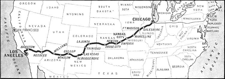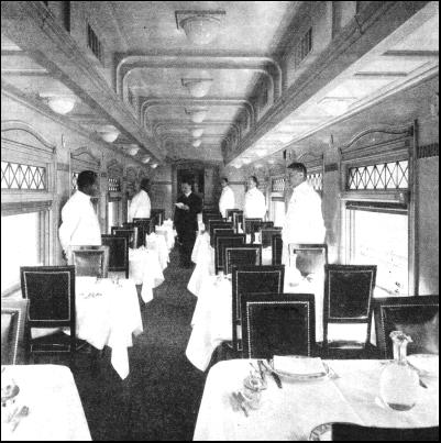 Scott's run became nation wide in its interest. It was front-page news, although it was later suggested that the journey was made merely as a publicity scheme and that Scott had received a reward rather than having paid a large sum of money for a specially chartered train. The journey was, however, a genuine one of good faith. The fame that descended on Mr. Scott was merely the aftermath which he had not anticipated. Through the speed anxiety of Mr. Walter Scott it became clear to the Santa Fe system that there were hardly any limits to improvements in running time, and even to-day this railway company will undertake specially chartered journeys if they are humanly possible. The real value of the journey of the "Death Valley Coyote," or the "Scott Special," lay in the fact that it emphasized more than ever the necessity of cutting down the time-distance between the Pacific Coast and Chicago. The Santa Fe system has been making continual improvements on its line, commensurate with the preservation of safety and comfort. Scott was, in a way, a pioneer of the present fastest train to run over the Santa Fe line between Chicago and San Diego, namely, the celebrated "Chief." which has in recent years become more famous, since it is used so much by film people travelling to and from Los Angeles (for Hollywood). There are at present five daily trains from Chicago to California, but the speediest is the "Chief." It leaves Dearborn Station at 11 a.m., arriving at San Diego at 9.30 p.m., two days later. There is an additional charge of a few dollars as an "extra fare" demanded for the train's special privileges. The "Chief" is frankly intended for those people who want the best. It is designed for men who demand the extra roaming space provided by the large club cars, and for women who love daintiness and immaculate surroundings.