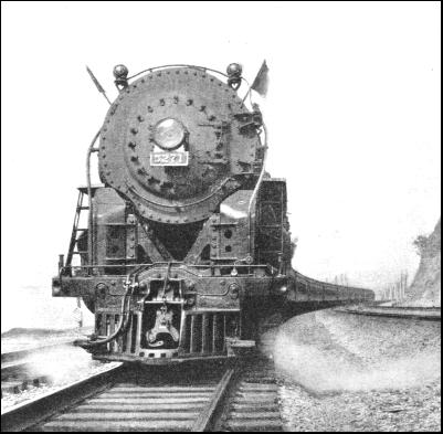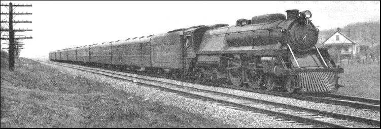 On the "Twentieth Century Limited," and other expresses nearly as last, loads exceeding a thousand tons in weight are not uncommon. They are hauled by the magnificent "Hudson" type 4-6-4 locomotives of the New York Central Lines, which are also used on the Michigan Central Division. The Pennsylvania, however, is content with "Pacifics" of generous dimensions for its high speed work, and with "Mountains" of the 4-8-2 type—very appropriately named—over the heavily graded section of the line through the Allegheny ranges, except, of course, on the electric section between New York and Paoli. Electric working plays a small part on the New York Central main line, as electric locomotives haul the trains from New York out to Harman, a distance of 32.7 miles, where a change over to steam takes place. When the "Century" is run in several sections—as is frequently necessary—the track arrangements between the Grand Central Terminal at New York and Harman are such that it is possible to start them all at once, and then to string them out suitably so that they follow one another at close intervals through to Chicago. A distinguished record of the "Broadway Limited" is that of having arrived dead to time on 362 days out of 365 in one year—a record probably unequalled by any other express in existence. Another historic competition has for many years taken place between the Pennsylvania and the Philadelphia and Reading Railroad, or the "Reading" for short, for the traffic between New York and Philadelphia, and between both these cities and the popular resorts of the Atlantic coast. It was the Reading Company that here established what for a considerable time was the world's fastest railway run. Philadelphia business men living at Atlantic City, and returning home in the afternoon, were ferried across the Delaware River to Camden, and then taken to the coast in the "Boardwalk Flyer." To complete the whole trip in the hour, of which the ferry monopolized at least ten minutes, it was necessary to book the express over the 55.5 miles between Camden and Atlantic City in 50 minutes. The train was an amazingly good time-keeper. Time and again precious minutes which had been lost by the ferry were regained by the locomotive. The "Atlantic," or 4-4-2 type of express engine, was first introduced on this service, from which it derived its name. The driver's cab was perched astride the boiler, ahead of the firebox, to give a better look-out ahead, with the fireman in a cab of his own, located in the customary position. Speeds of 90 miles and over were common, and the fastest time on record—42 minutes 33 seconds—was made in May, 1905. This run, with its start-to-stop average speed of 78.3 miles an hour, was probably the fastest ever made on any railway from dead start to dead stop until the 81.7 miles per hour Swindon-Paddington run of the Great Western Railway in June, 1932.
